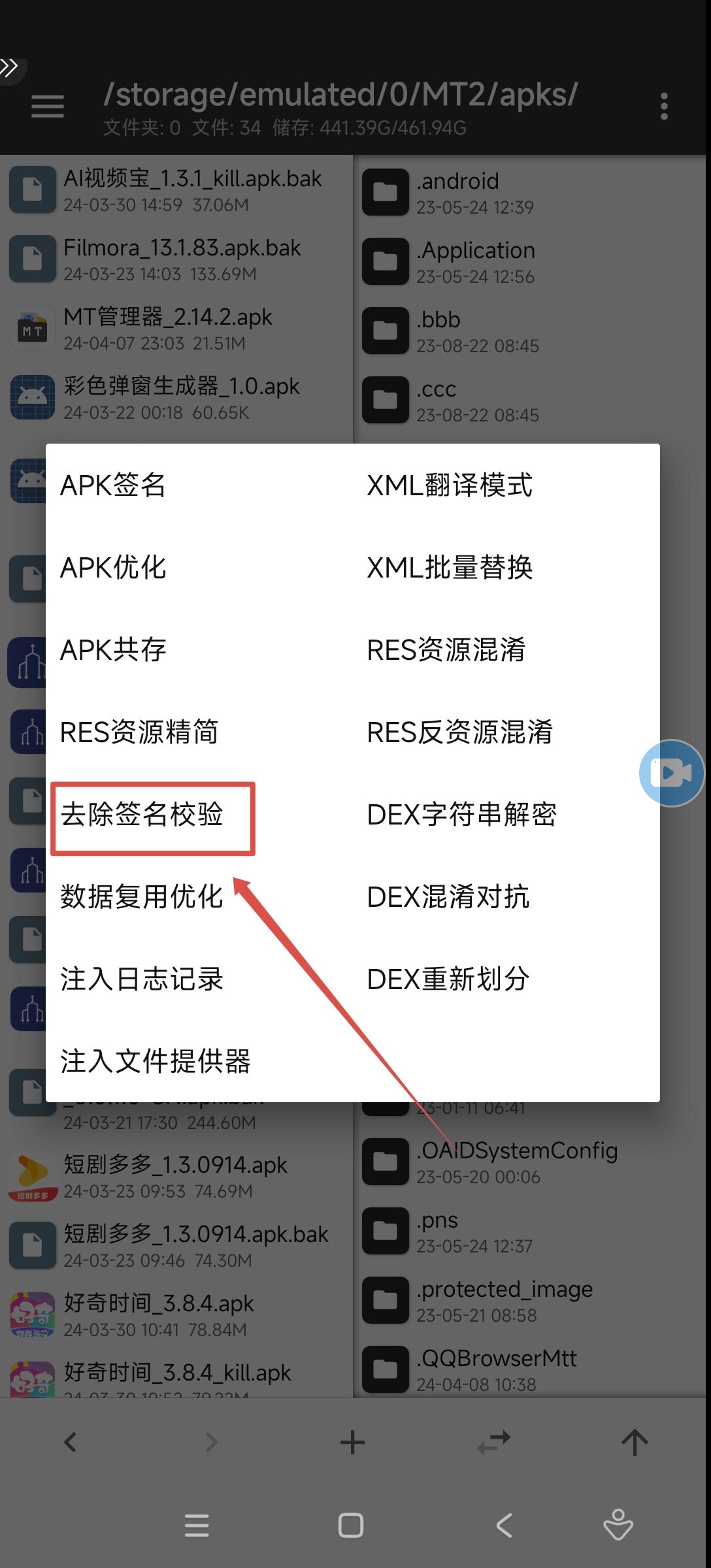 (操作顺序:从左往右顺序图P1-5,过程为:提取安装包——去签名效验(注意: 一定要去签)